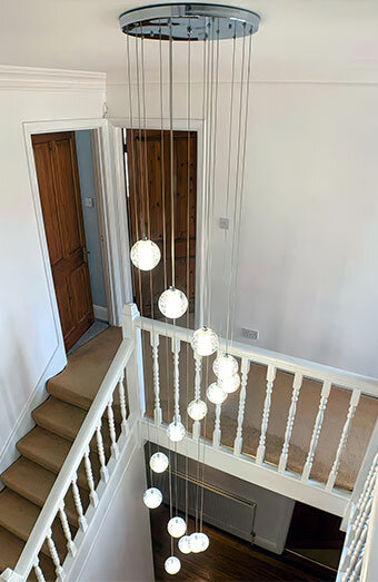 Professional installation of all lighting types including pendant lights, downlights, oyster lights and chandeliers for homes and businesses.
